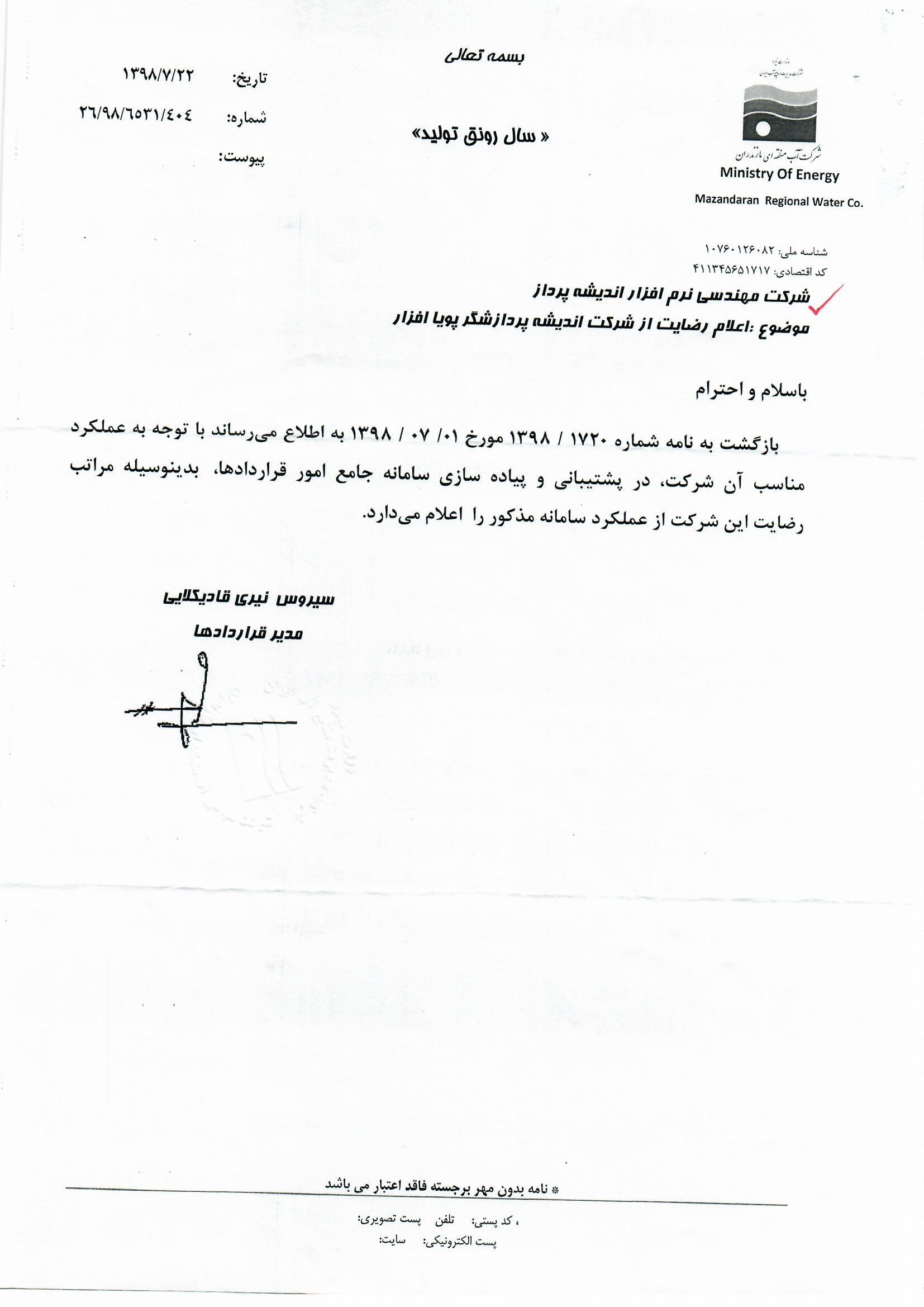 تقدیر شرکت آب منطقه ای مازندران از اندیشه پرداز