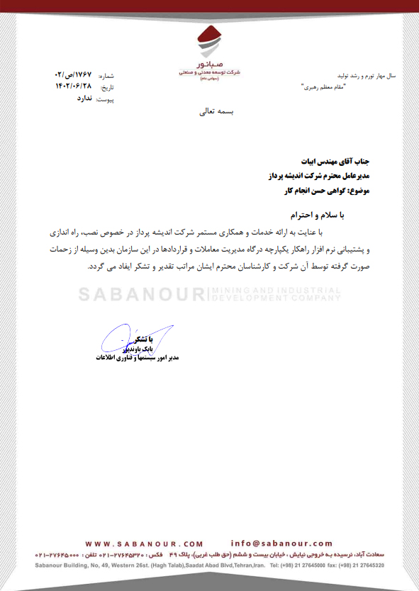 شرح موفقیت استقرار پروژه نرم افزار سامانه درگاه در شرکت توسعه معدنی و صنعتی صبانور